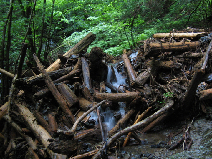 山のように溜まった流木。