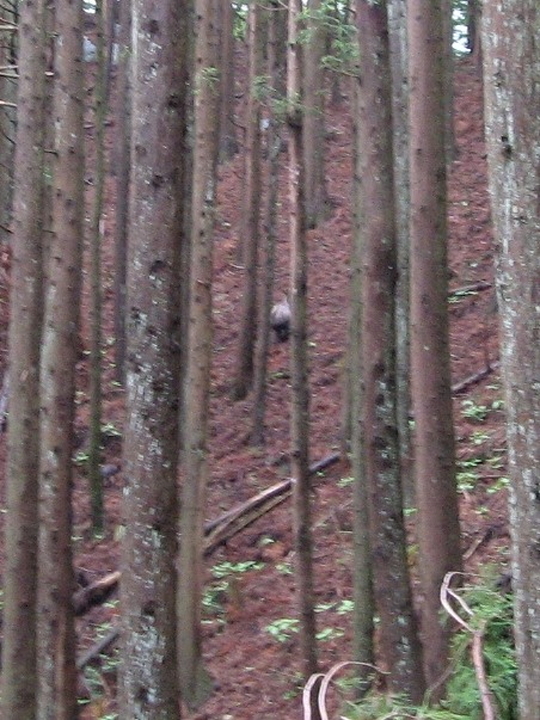 長尾丸山の巻き道に入った所でカモシカ親子発見。急坂を親に遅れた子がブゥイィーと甲高い声で鳴いていたので、イノシシかも。