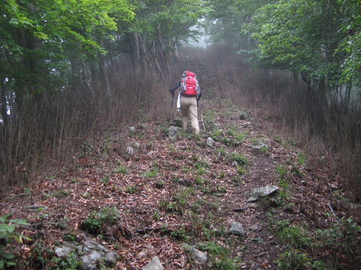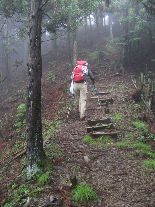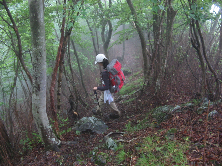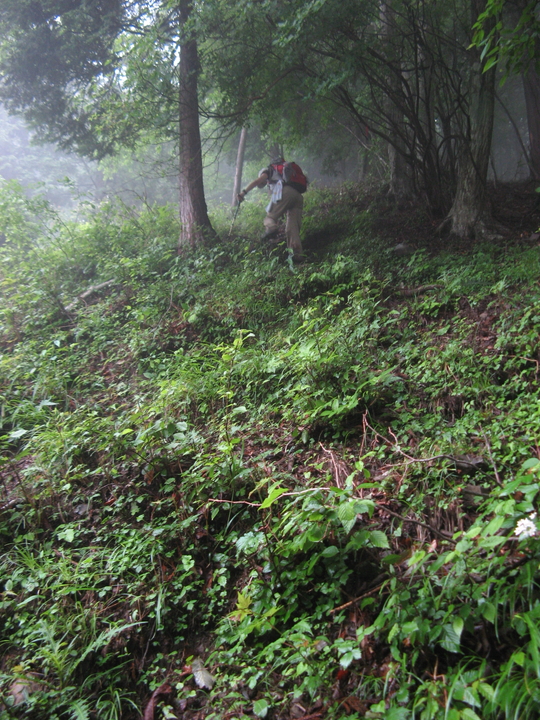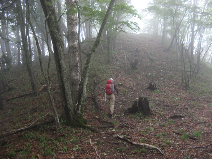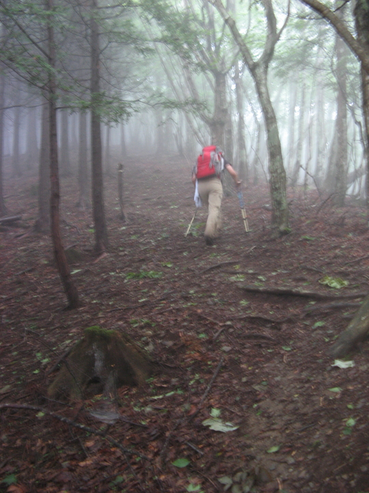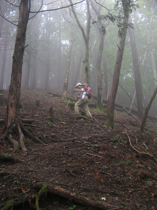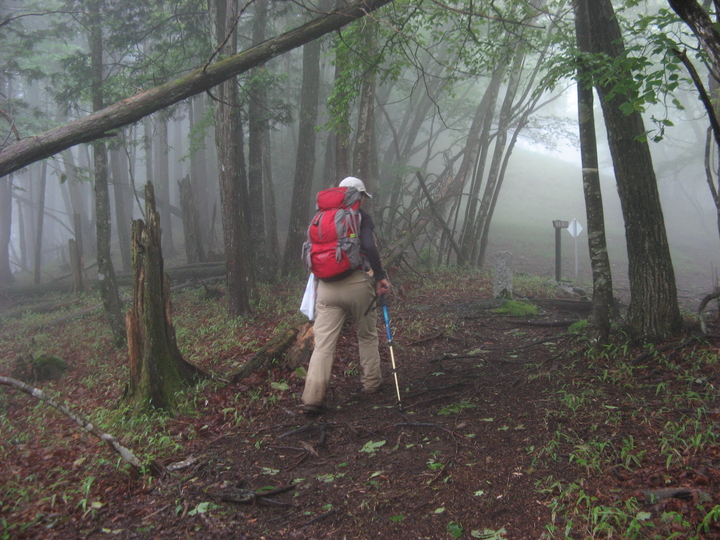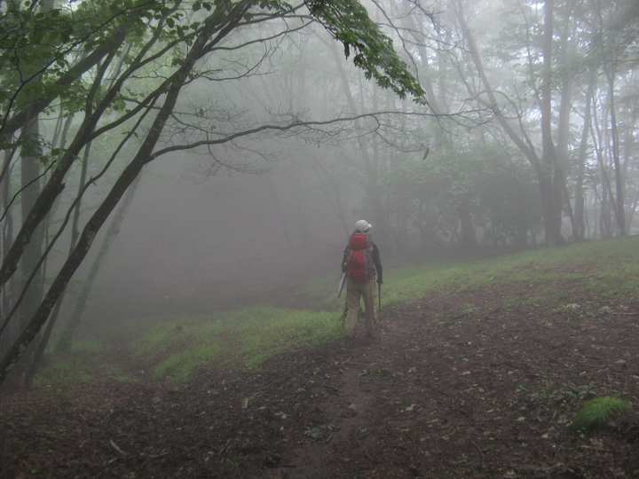 山が霧に覆われてきた。幻想的な深山の雰囲気に感じ入りながら、ひたすら歩く。