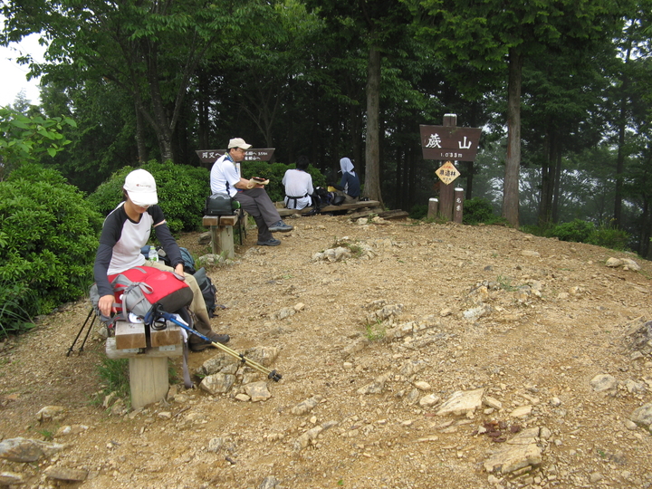 13:00 ついに蕨山の展望台に到着。先客が3組いた。雨は止んでいたので、ベンチでおにぎりを食べながらゆっくり休憩できた。