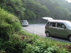 登山道入口の駐車スペース。着いたときに1台停まっていたが、車の主はすでに登り終えて帰るところだった。