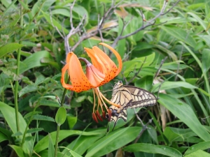 綺麗なアゲハ蝶がヤマユリの蜜を吸っていた。けっこう大きかった。