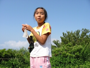 山頂付近はトンボとハチが多くて、娘はビビりまくり。