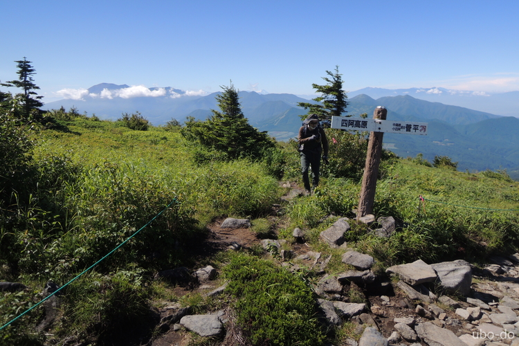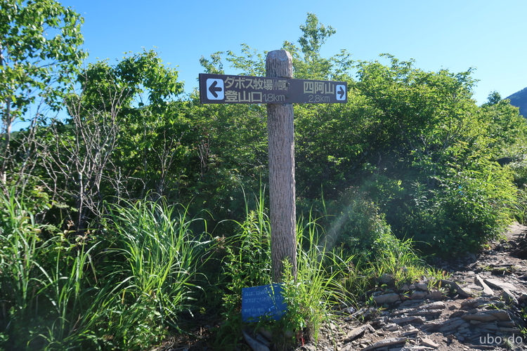 樹林帯を抜けて根子岳と中四阿の分岐に出た。右に折れて根子岳へ向かう。