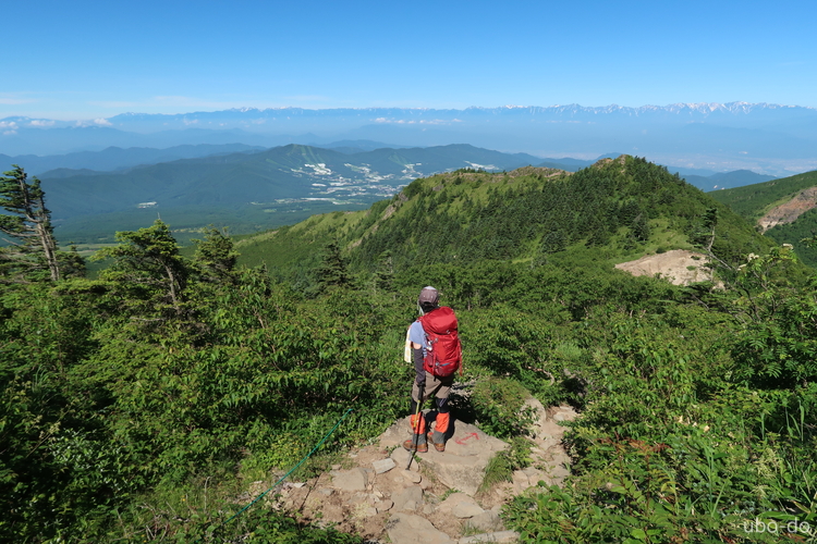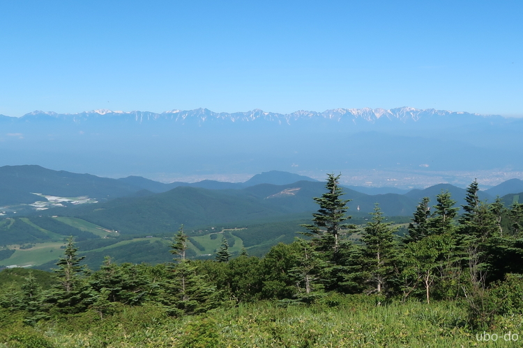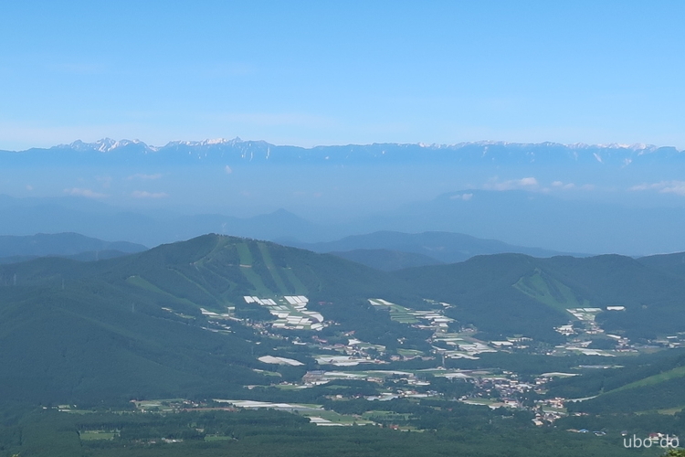 背後の西側には北アルプスや中央アルプスの広大な眺めが広がっていた。