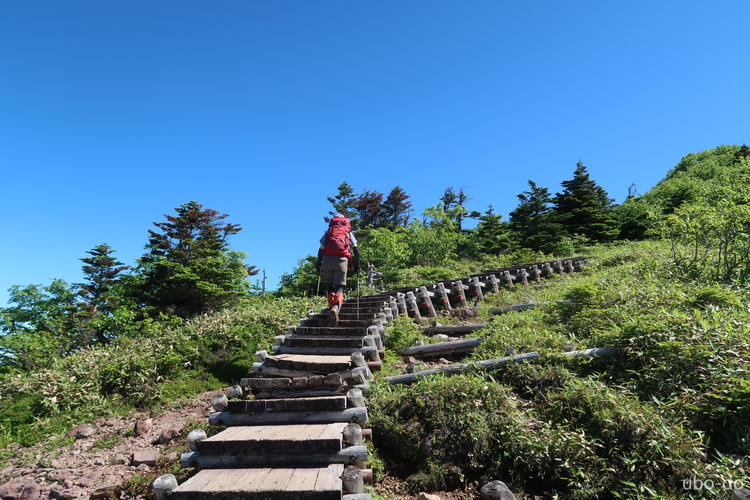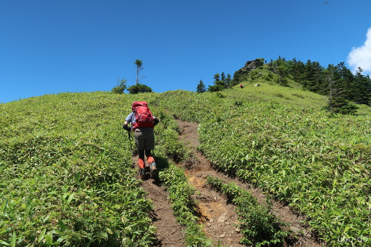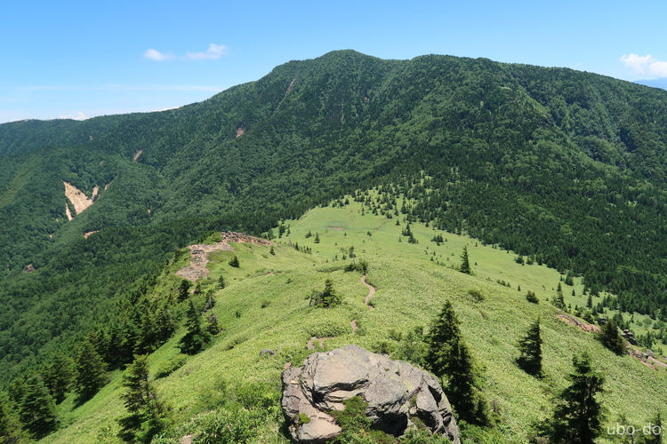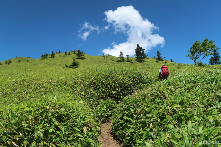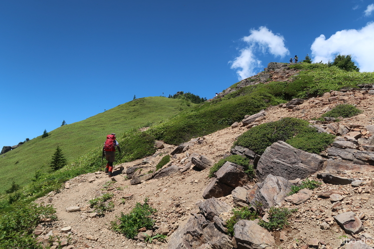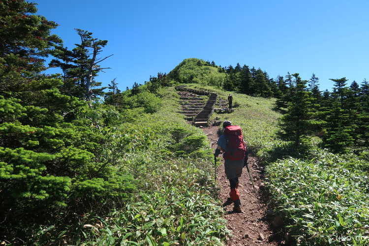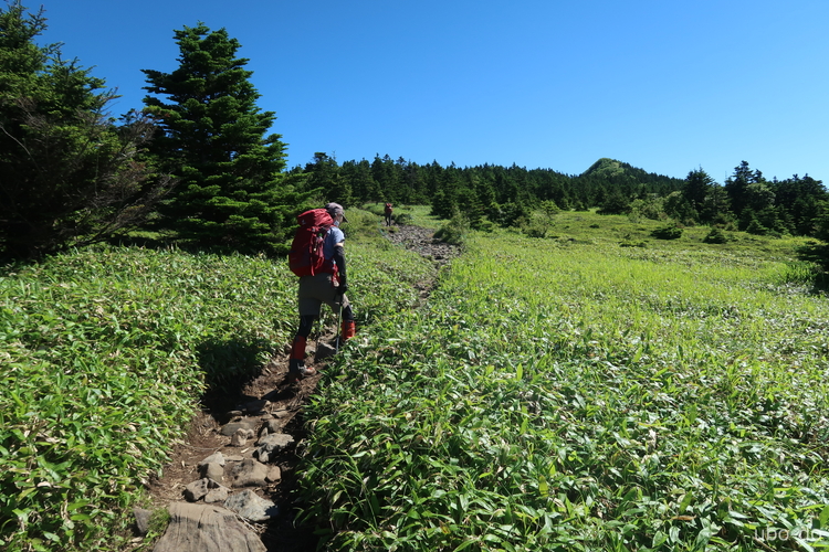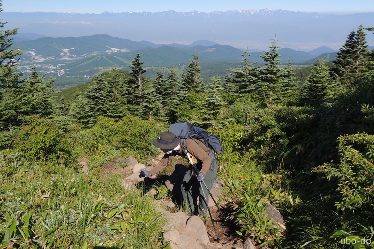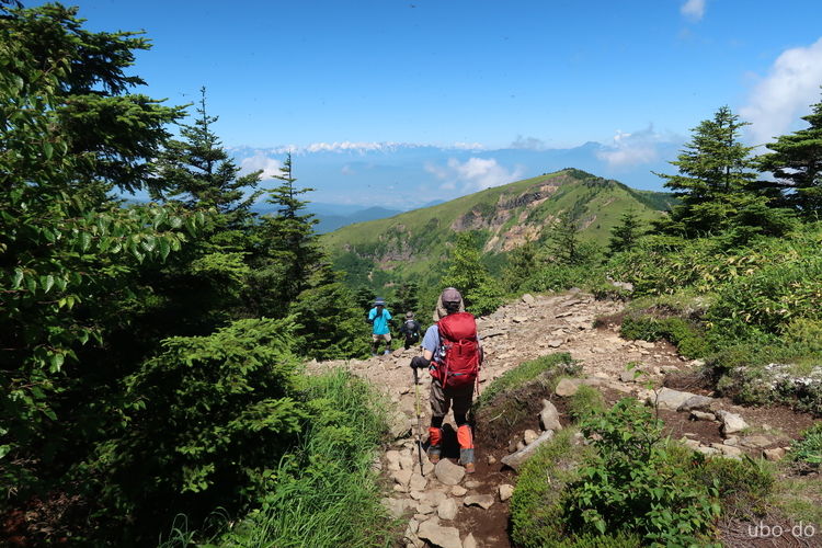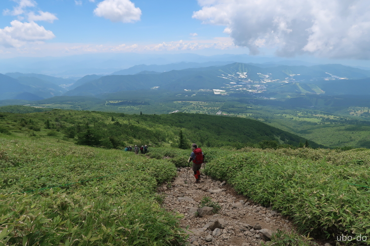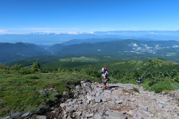 分岐を過ぎると、根子岳方面から登ってくる登山者とすれ違うことが多くなった。