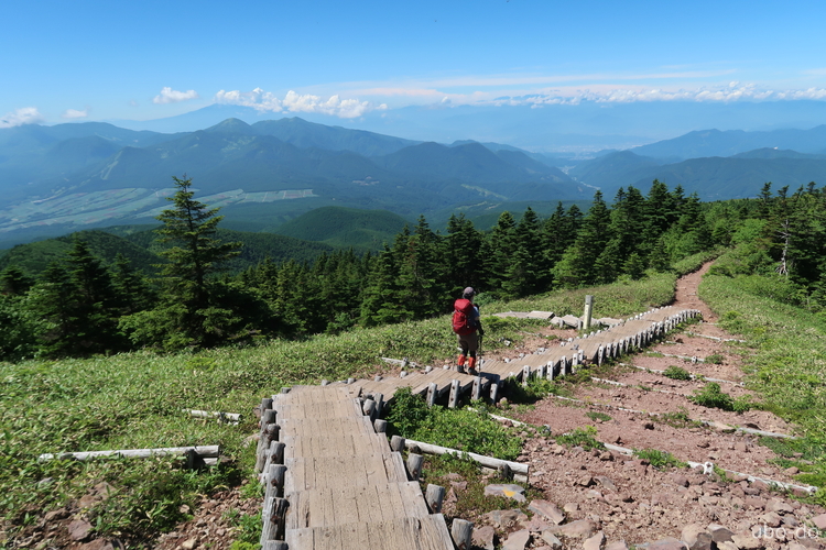 2時起床、2時45分出発。菅平牧場には5時5分到着。この2ヵ月近く、週末にすっきり晴れる日がなくて、なかなか登山の機会に恵まれなかったが、梅雨明けした最初の週末にやっと晴れてくれた。