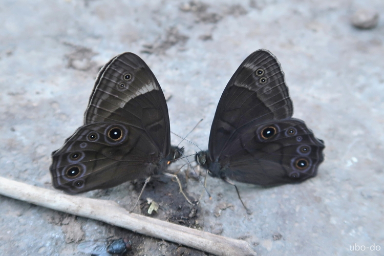 動物の糞に群がるタテハチョウ科のクロヒカゲ。