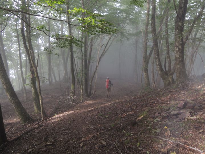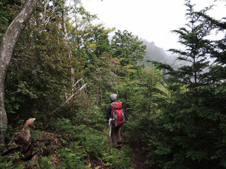 しばらく上って振り返ると、小持山も雲に覆われていた。途中でニホントカゲを見かけたが、これも撮り逃した。