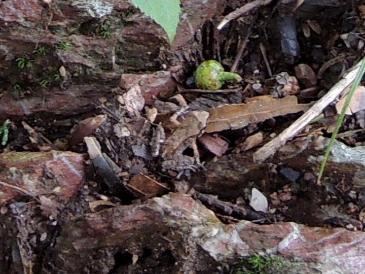 急登を終えてなだらかな尾根筋を歩いていると、ガマガエルが出てきた。