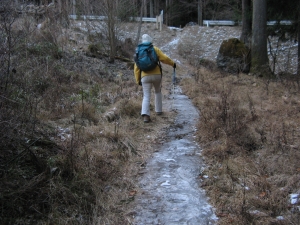 出発直後、ストックを忘れたことに気づいて、嫁が車まで取りに戻った。
