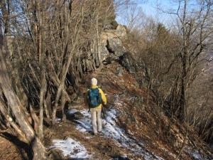 下りの積雪箇所を慎重に進む。露岩からすれ違うハイカーが増えてきた。