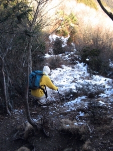 山道が凍結している箇所もあったが、アイゼンが必要になるほどではなかった。