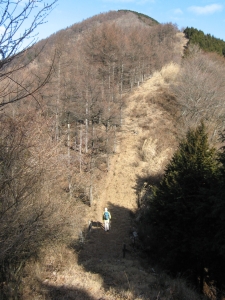 小持山からシラジクボ峠まで、200mを一気に下る。上り返しが心配になるくらい下りが続く。