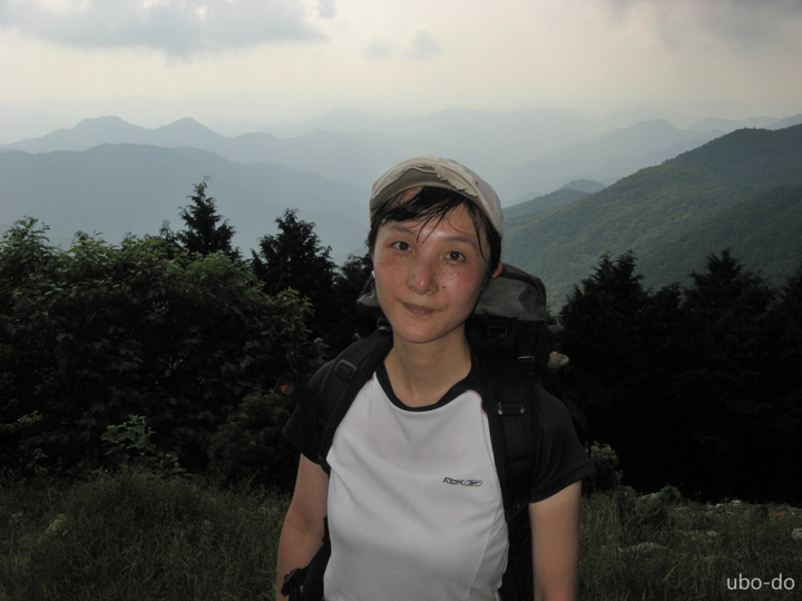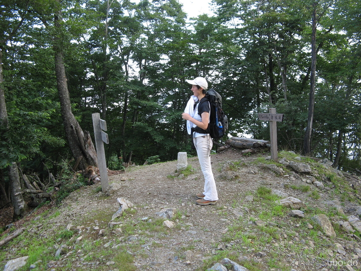 出発から約2時間で尾根の分岐に到着。薄雲が広がっていて、遠望はきかなかった。