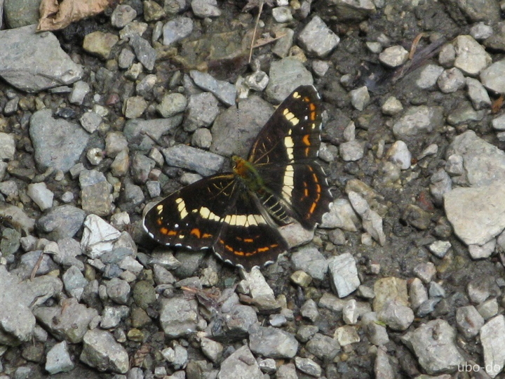 沢沿いの道に出たところで、サカハチチョウと色鮮やかなミヤマカラスアゲハを発見。