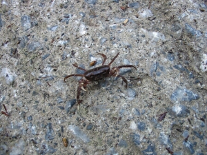 歩き始めてまもなくすると、道を横切る沢蟹を見つけた。