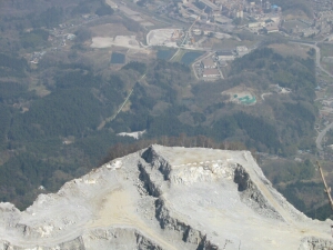 すぐ下には石灰石の採掘現場が広がっているが鉄柵で入れなくなっている。