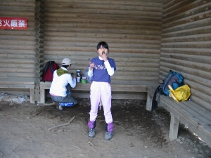 御嶽神社を少し下りた所にある丸太小屋で食事にした。