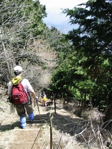 展望のきいた十字路から階段コースで下山した。