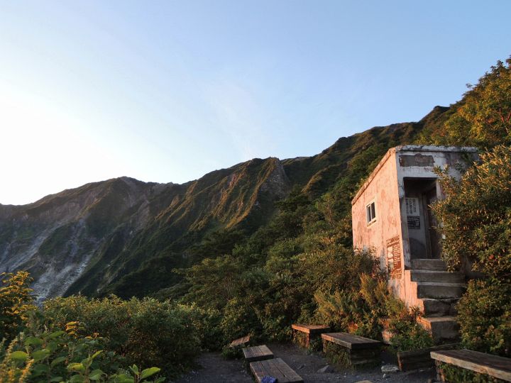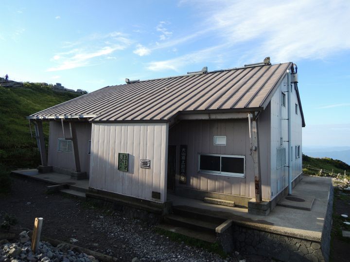 頂上避難小屋を通過。小屋の中に人の気配があった。