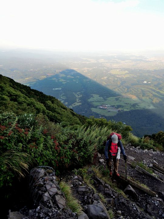 暗闇を上り始めてすぐに学生集団に抜かされたが、彼らが休憩中に我々が抜き返した。ペースの速い彼らの先頭集団にまた抜かされて、先頭集団が後続を待っているところを我々がまた抜かす、ということを4合目付近まで何度も繰り返した。少々煩わしくなってきて、先頭の男子3名は後続のペースに合わせてくれないかなぁと感じたが、上るペースは人それぞれなので仕方なし。