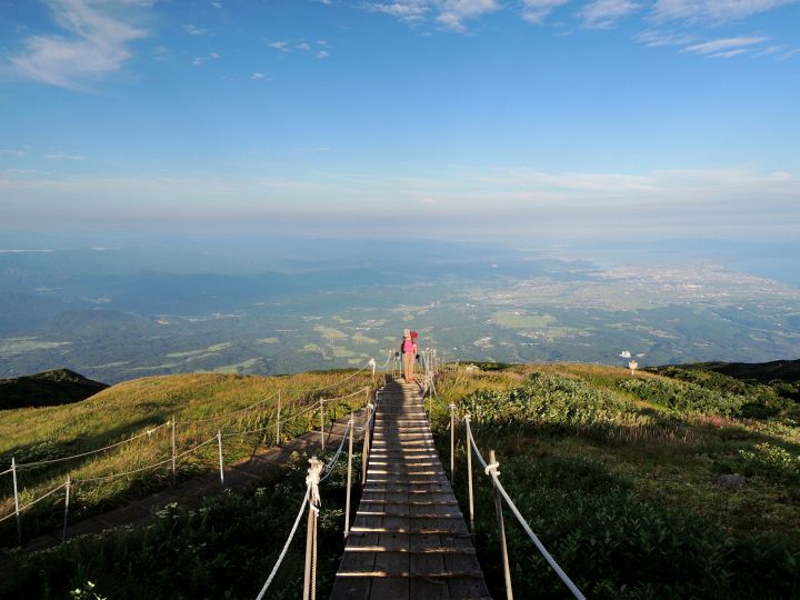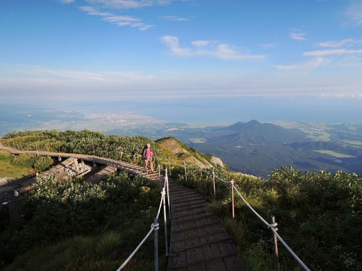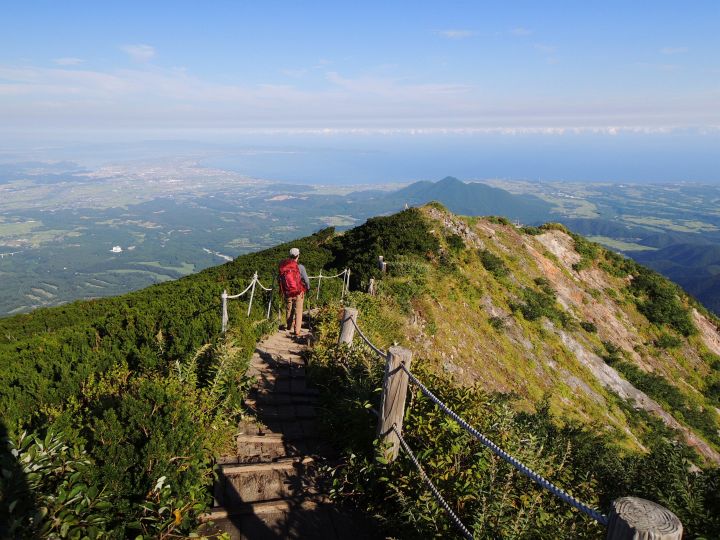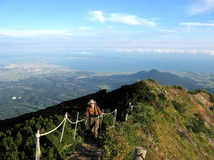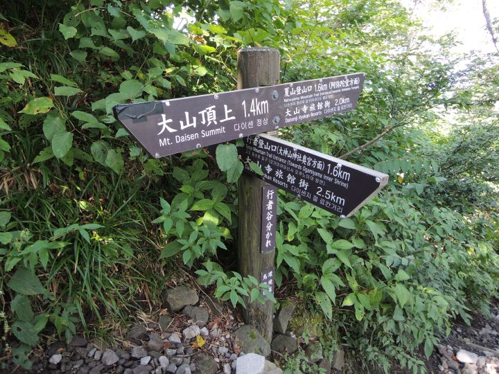 石室の分岐から数分で9合目を通過。大山は出雲国風土記「国引きの神話」に登場し、古代から「神々がおわす山」としてあがめられてきた。日本海側にそびえ立つ独立峰だけあって、稜線からの展望は素晴らしかった。