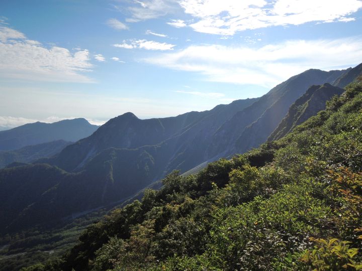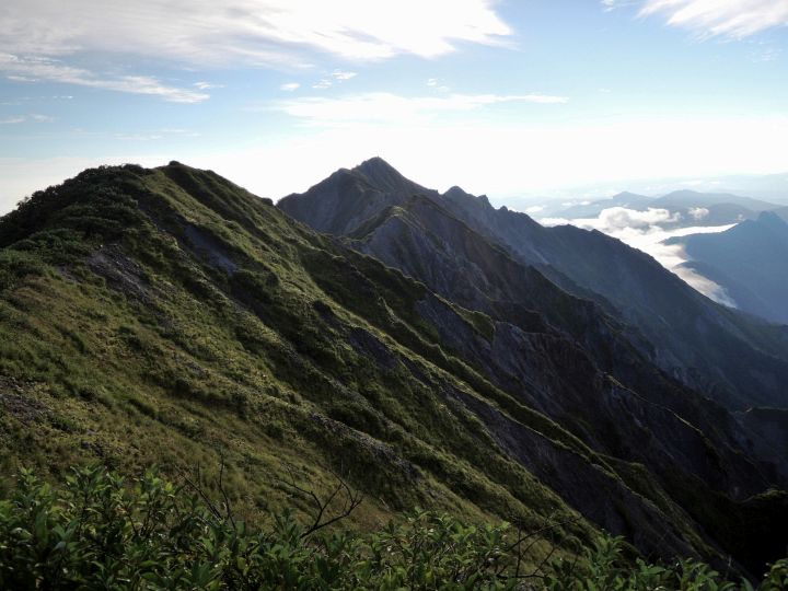 開放感抜群の尾根を歩く。登山者はまだ少なくて、学生集団もいつしか振り切っていた。