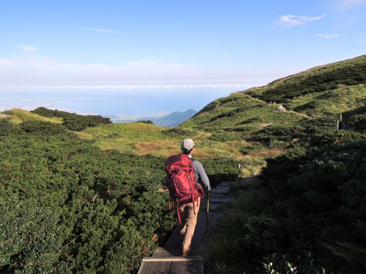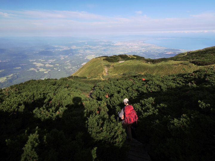 6合目からは森林限界を超えて展望がさらによくなった。度々足を止めて、眺めを楽しみながら上った。