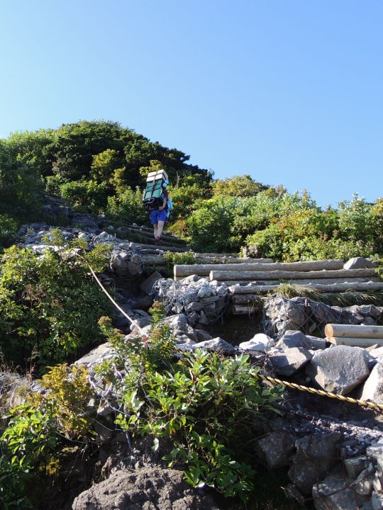大きな荷物を背負った女性歩荷とすれ違う。歩荷をする女性はあまりいないだろうから、アルピニストかも。