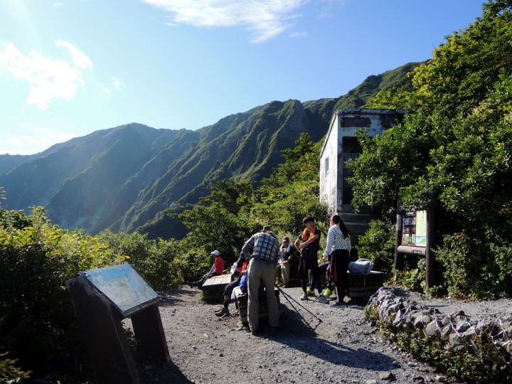 8:30 6合目の避難小屋を通過。日陰がないのが難点だが、10人近くの登山者が休憩していた。