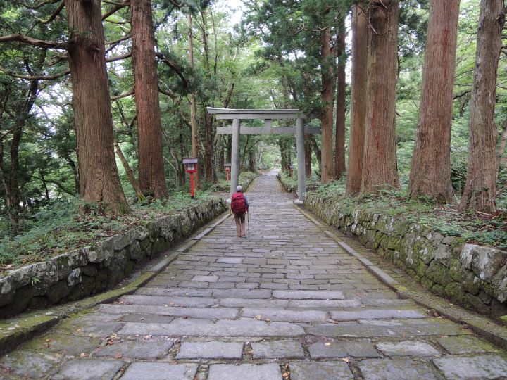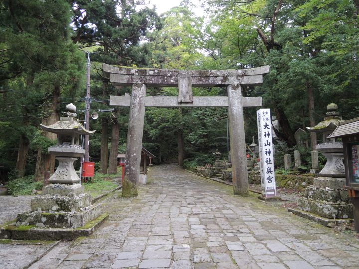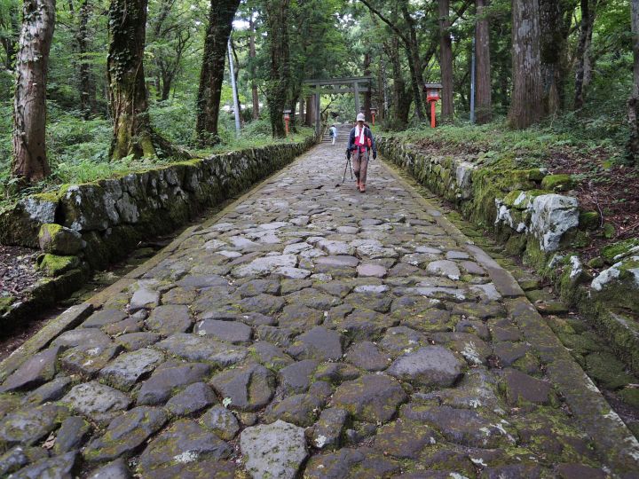 大神山神社へ続く参道は約700m。自然石を敷きつめたものとしては国内最長らしい。