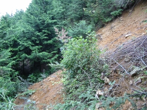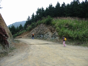 道の先は土砂崩れでふさがっていた。引き返したがこれで1時間のロス。