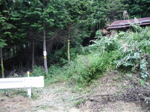 林道を左に入った右手にボロな東屋があり、その左側に山道を見つけたので行ってみた。