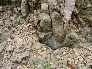 途中で蛇を見つけた。ちょっかい出すと向かってきたのでビックリ。