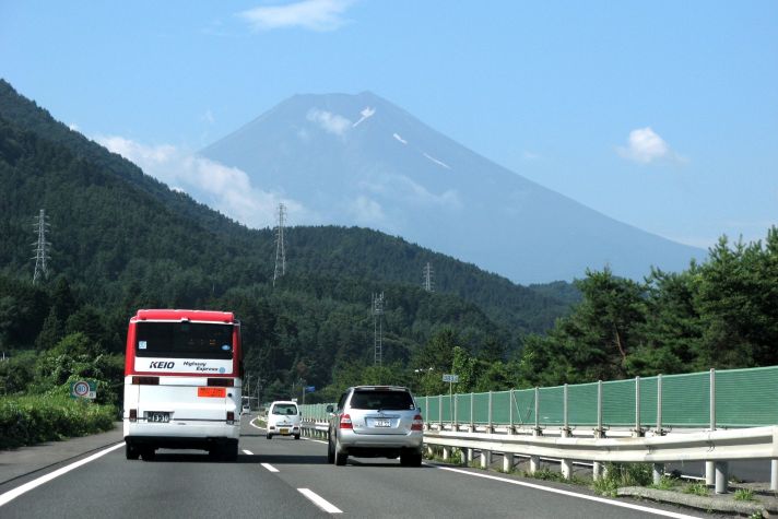 高速から富士山が見えた。あの山頂に登るのかと思うとわくわくしてきた。