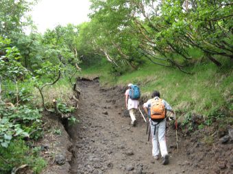 ダケカンバやミヤマハンノキなどの樹林帯を出たり入ったりしながら上っていく。