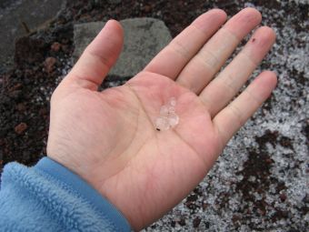 突然山小屋の外が豪雨となって雹が降り出した。すぐに止んだが、変わりやすい山の天気に改めて驚く。
