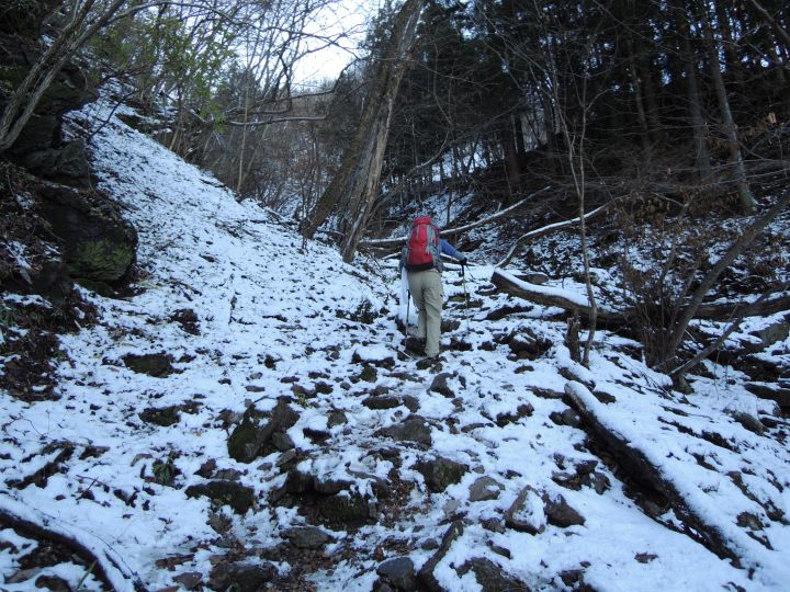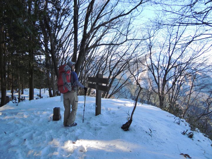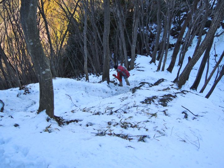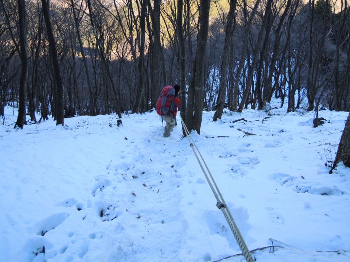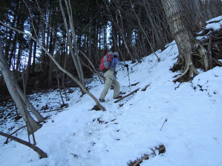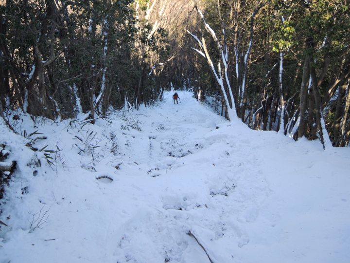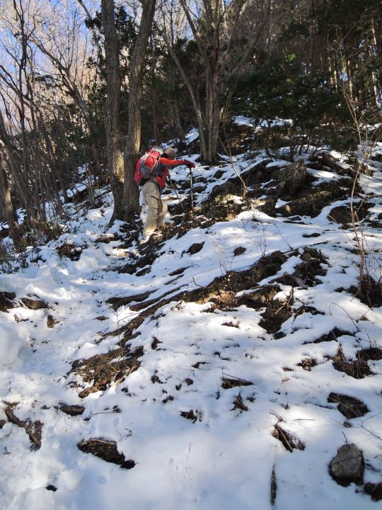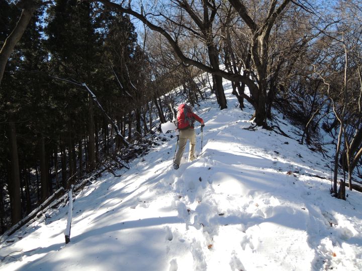 山頂直下は滑りやすい急坂だが、積雪のおかげでいつもよりも上るのが簡単だった。
