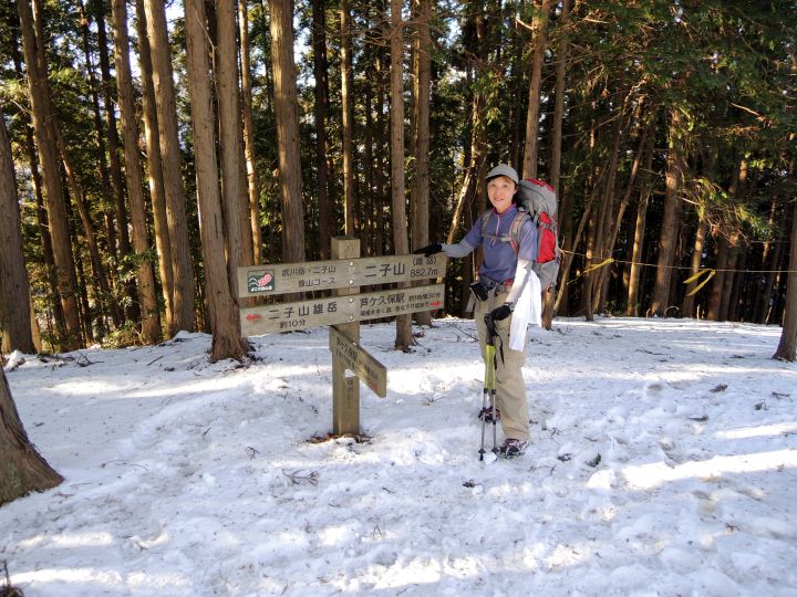 9:35 二子山の雌岳に到着。展望はないので、写真だけ撮って先へ進んだ。