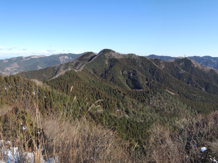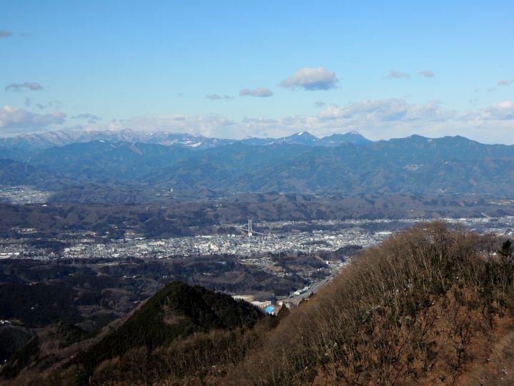 北東方面には二子山。背後には奥武蔵の山並み。