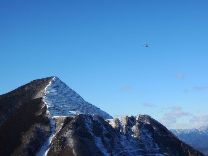 武甲山の山頂をかすめるようにして、ヘリコプターが秩父方面へ飛んで行った。