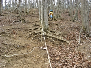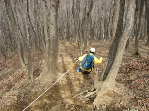 雌岳からの下りも急ですべりやすかった。ロープが掛けられていなければ大変だっただろう。