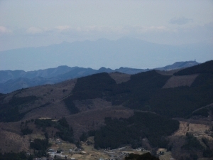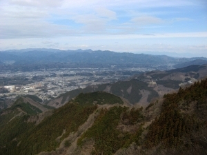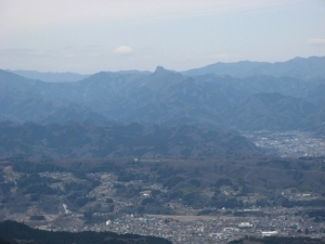 北西方面。秩父市の向うに浅間山、御荷鉾山、榛名山、赤城山などの山並が続く。