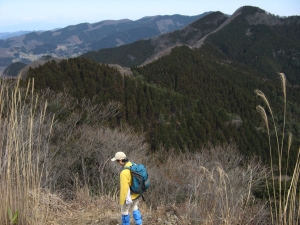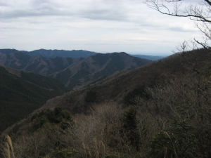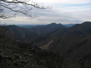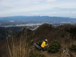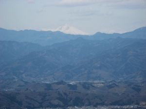 途中で南東方面が見渡せた。中央右の伊豆ヶ岳の向うには、横浜のビル群がかすかに見えていた。