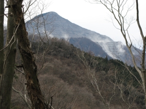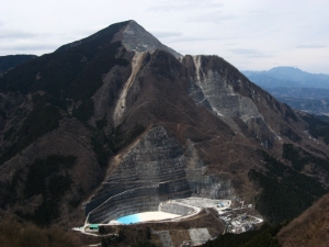 「ドドーン」と採掘工事の音がしたので見てみると、武甲山あちこちから粉塵が上がっていた。