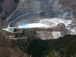 武甲山の麓にある巨大なプール型のものが目についた。菱光石灰工業の設備工場らしい。