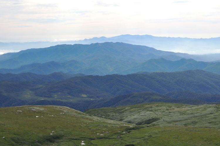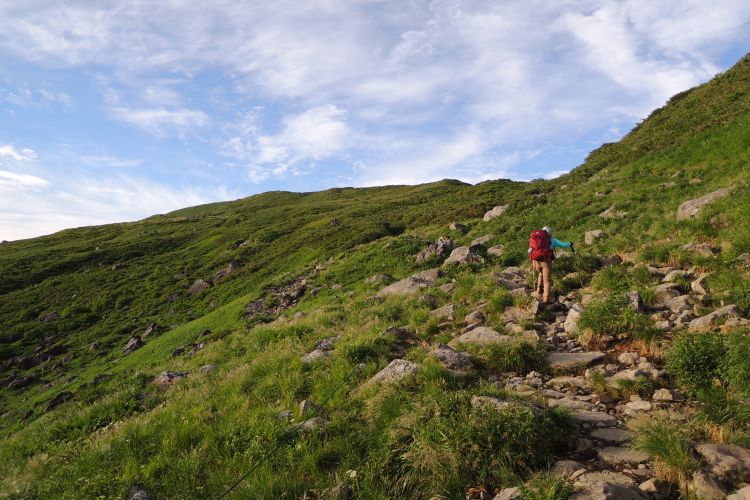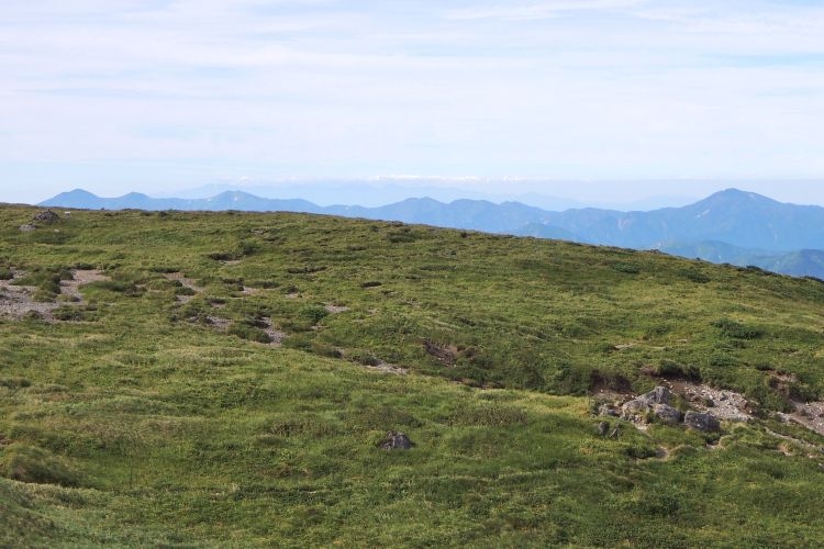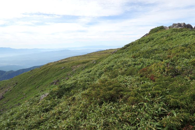 東側の広大な緩斜面。どこまでも見晴らしがよく、気持ちのよい山歩きが続く。