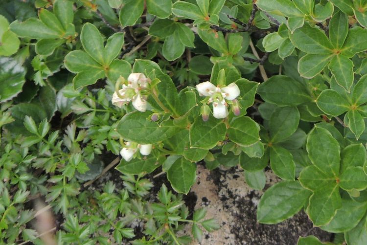 数ヶ所でのみ見かけたツツジ科の常緑小低木、アオノツガザクラ。