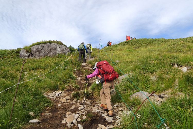 9時をまわって、団体ハイカーがぞくぞくと上ってきていた。
